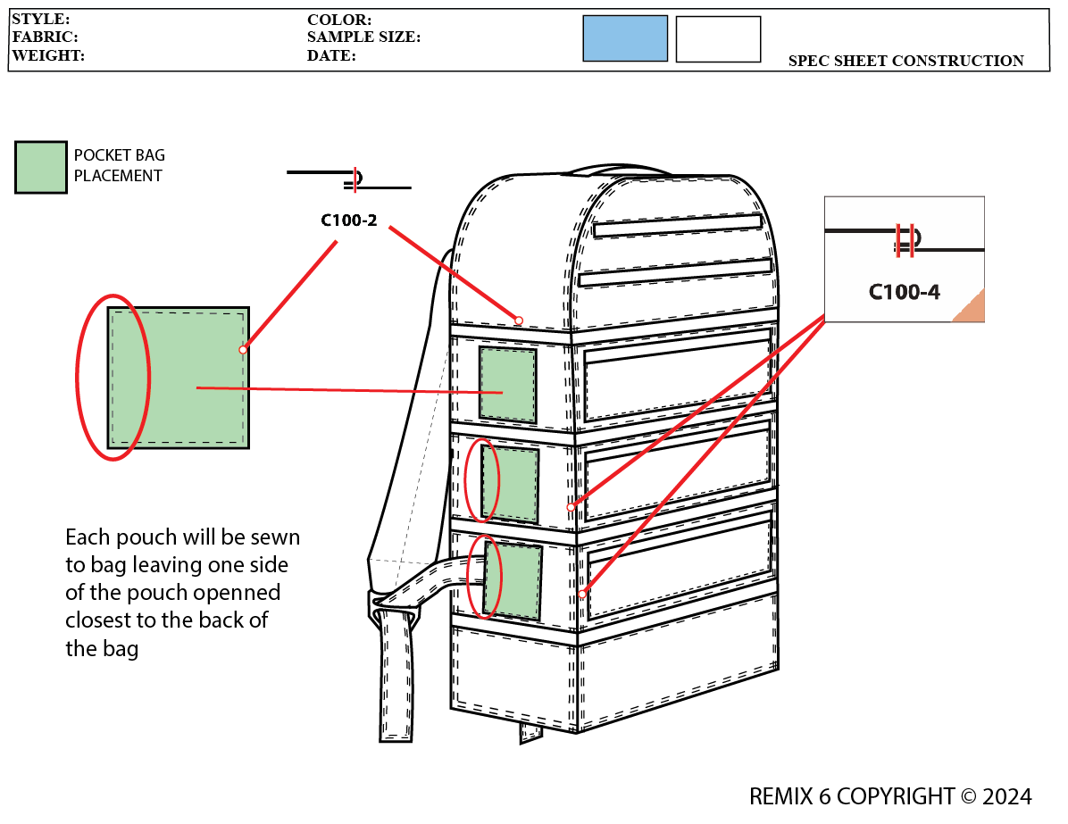 • Receive a professional technical illustration of your garment, detailing every seam, stitch, and component for clear communication with manufacturers.
